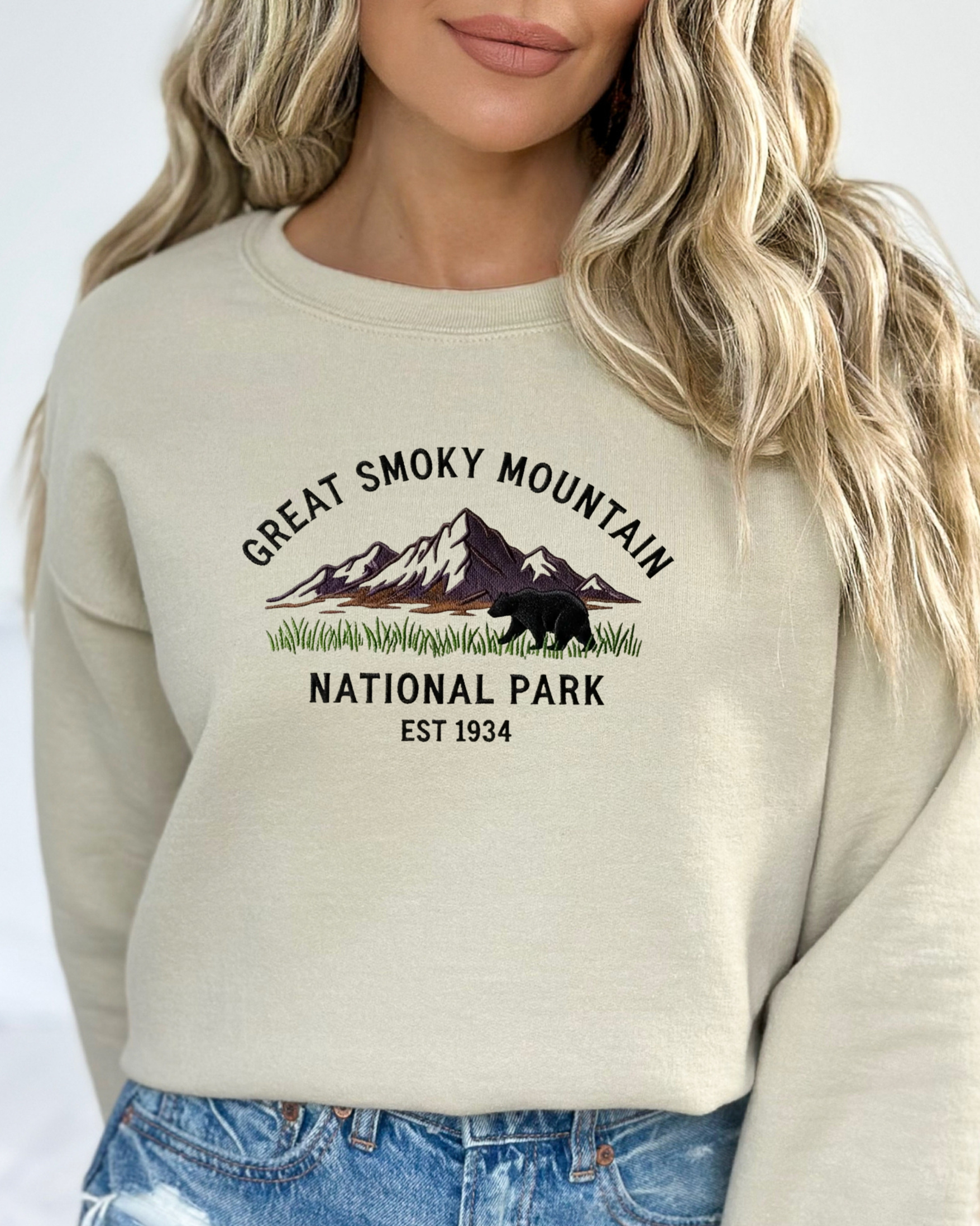 Celebrate one of Americaโs most beloved landscapes with our Great Smoky Mountain National Park Sweatshirt! Featuring a vintage-inspired mountain and bear design, this timeless crewneck captures the rugged beauty and adventure of the Smokies. The neutral sand tone makes it easy to style year-round, whether youโre exploring the trails, relaxing by the fire, or enjoying a weekend getaway in the mountains.